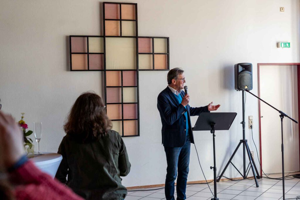 Beim anschließenden Sektempfang im Jugendheim gab es Gelegenheit für persönliche Worte, Erinnerungen und herzliche Wünsche für die Zukunft. Als besonderes Zeichen hinterlässt Pfarrer Fillinger unserer Gemeinde ein großes Kreuz, das uns im Kirchenhintergrund weiterhin begleiten und als Symbol der Hoffnung stehen wird.