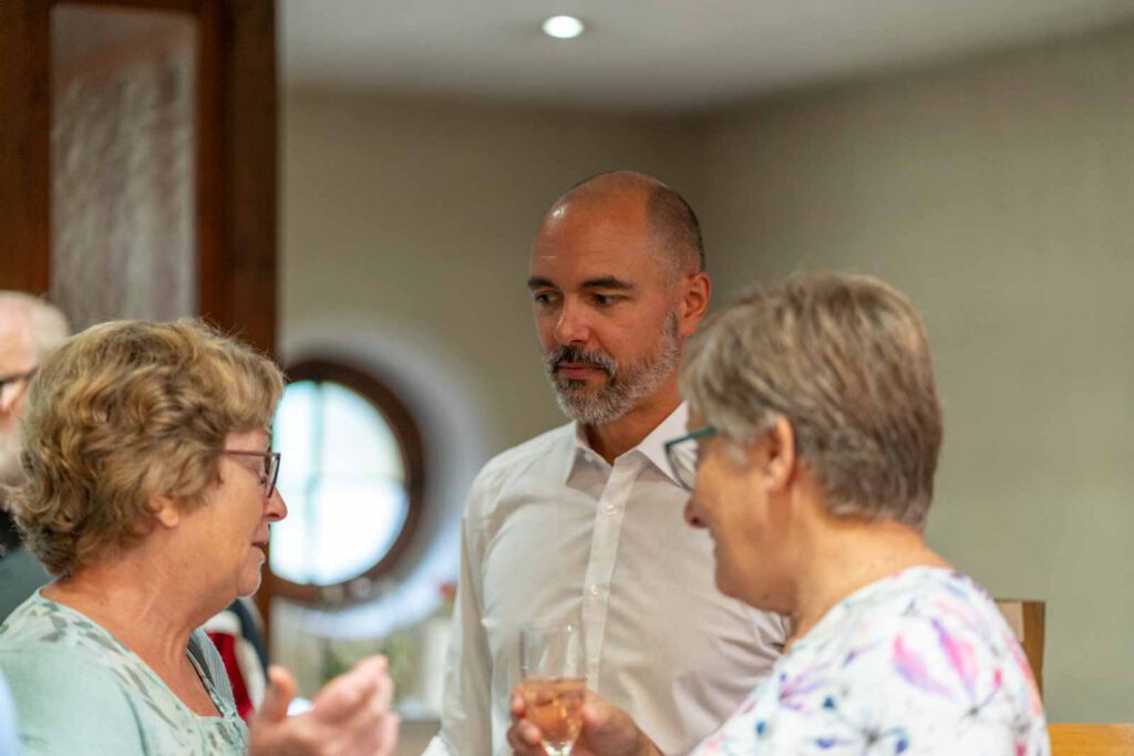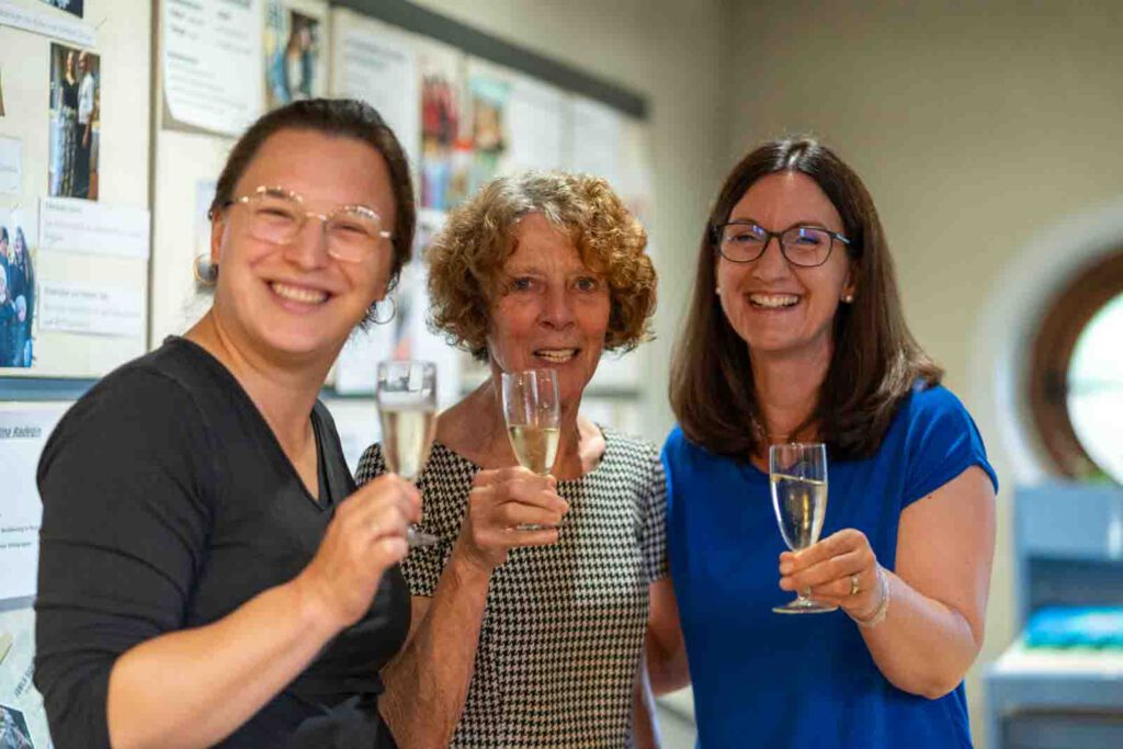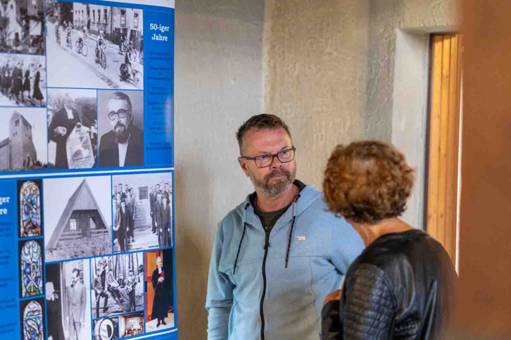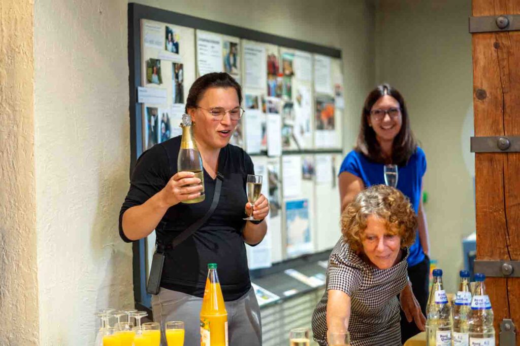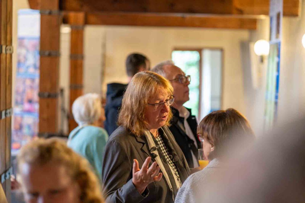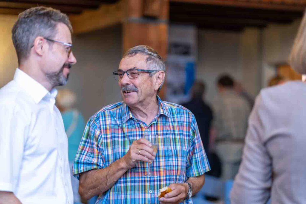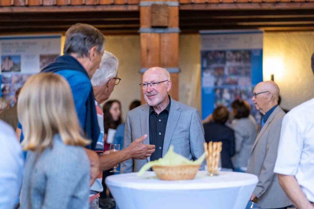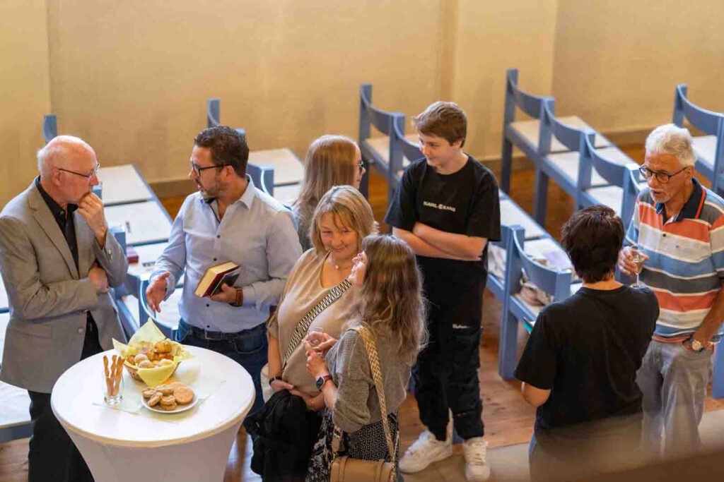 Beim anschließenden Sektempfang gab es reichlich Gelegenheit, Erinnerungen auszutauschen und miteinander ins Gespräch zu kommen. Schaut gerne bei der Ausstellung vorbei und feiert mit uns das Jubiläum unserer Kirche!