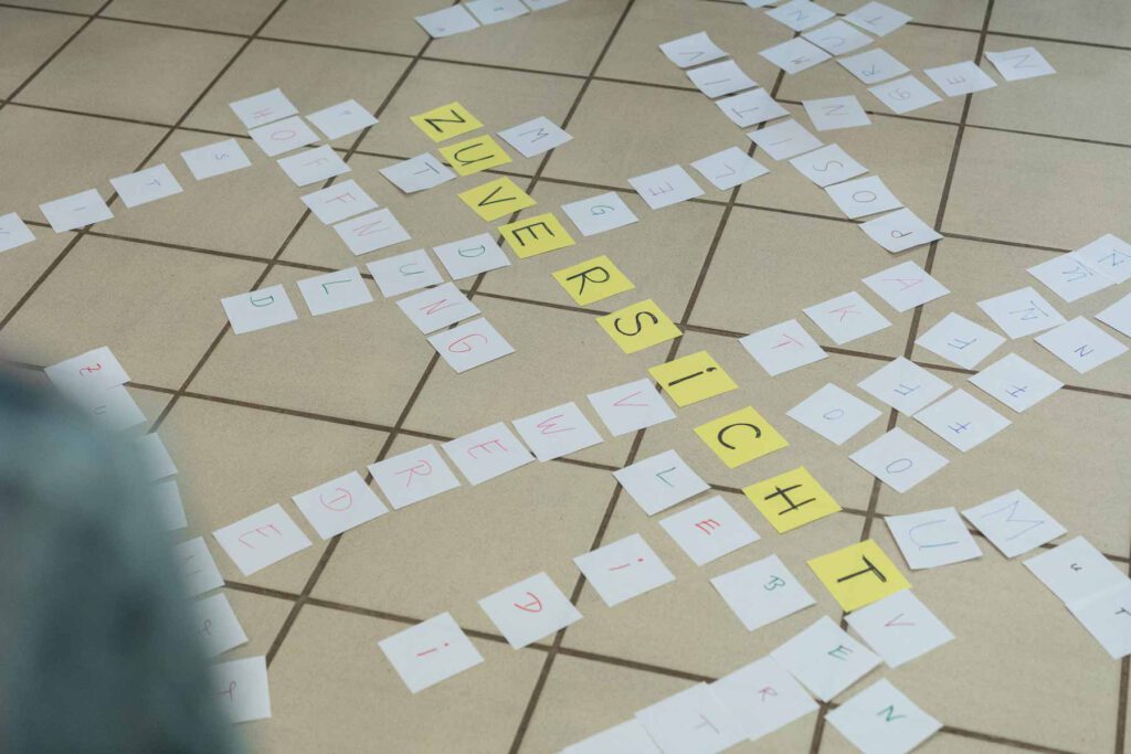 Neben inspirierenden Gedanken und Einblicken in die vielfältige Arbeit der OJC gab es auch interaktive Begegnungsmöglichkeiten, etwa eine Arbeit von gemeinsamem Scrabble, bei der jede*r für sich ausdrücken konnte, was Zuversicht bedeutet.