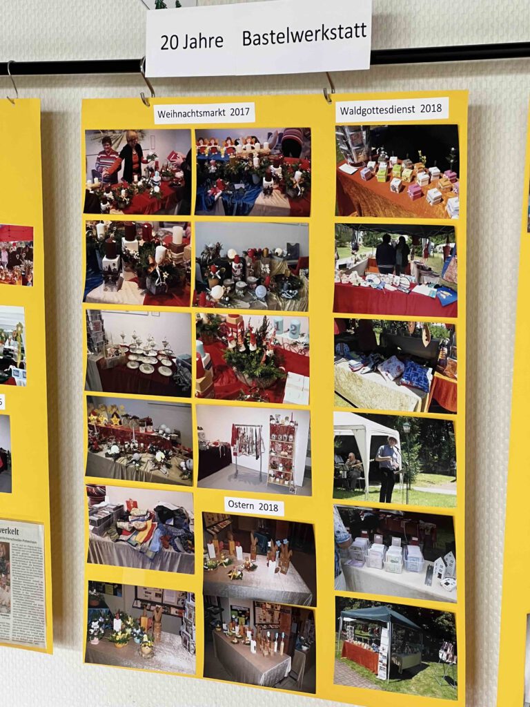 Anlässlich des 20jährigen Jubiläums hatte Edelgard Hollinger die jahrelangen Mitarbeiter zu einem leckeren Essen in festlichem Rahmen ins Jugendheim eingeladen. Dieser Abend hat auch gezeigt, wie wichtig uns allen die Bastelwerkstatt ist und wie sie uns als Gemeinschaft zusammengeschweißt hat. Dokumentiert wurde das auch eindrücklich durch die umfangreiche Bilderwand, die Edelgard liebevoll zusammengestellt hatte.