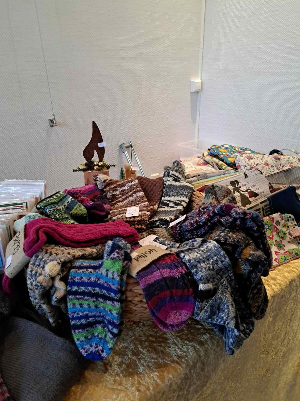Unterstützung erhalten wir durch etliche Heimwerker. Zu nennen wären da vor allem Henny Zastrau, die seit 20 Jahren die hochwertigen Näharbeiten fertigt. Die zahlreichen Holzteile wurden lange Zeit von Oswald Wagner fachmännisch ausgesägt, seit ein paar Jahren hat diese wertvolle Tätigkeit Heinz Niebergall übernommen und sie wird von ihm bis heute ausgeführt. Als kunstvolle Socken-Strickerin hatte uns Gerda Benner jahrelang kräftig unterstützt und unsere Verkaufstische durch ihre handgestrickten Socken aufgewertet. Sie und Oswald Wagner sind im letzten Jahr leider verstorben.
