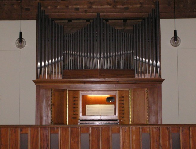 1953/54 wurde die Kirche erbaut. Endlich hatte das Dorf eine eigene Kirche. Bereits 18 Jahre später, 1972, wurde die Kirche in größerem Umfang renoviert. Das Presbyterium damals bewies Mut. Kanzel und Altar waren sehr massiv. Darum hat man den gesamten Altarraum neu gestaltet (Altar, Kanzel, Lesepult, Taufbecken) und neue Stühle und Lampen gekauft.