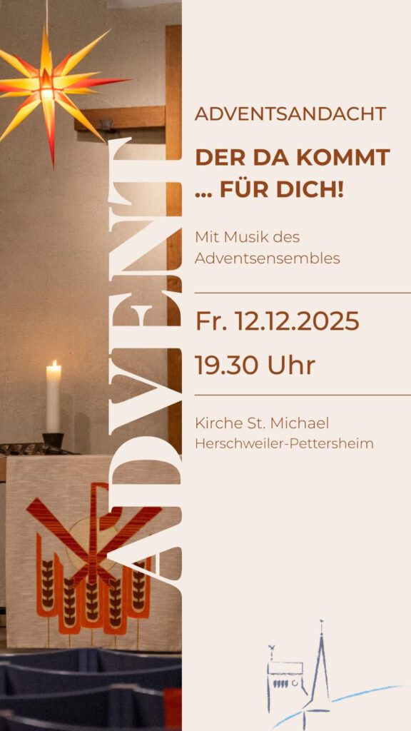 Herzliche Einladung zur Adventsandacht in der Kirche St. Michael in Herschweiler-Pettersheim. Musikalisch begleitet wird der Abend vom Adventsensemble.