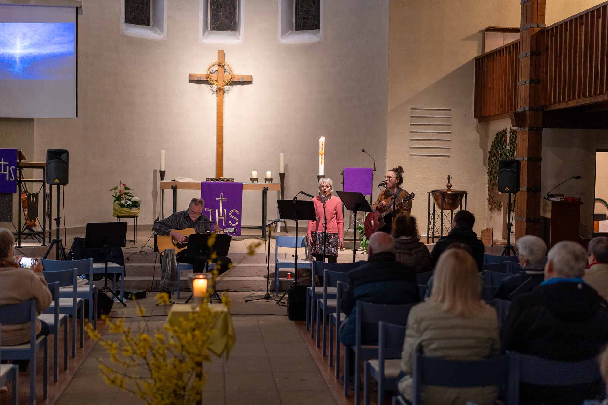 In Texten und Gedanken wurde deutlich, wo wir selbst gefragt sind, Lasten mitzutragen, füreinander einzustehen und uns unterbrechen zu lassen. Musik und Wort ergänzten sich und luden dazu ein, innezuhalten und die Passionsgeschichte persönlich an sich heranzulassen.