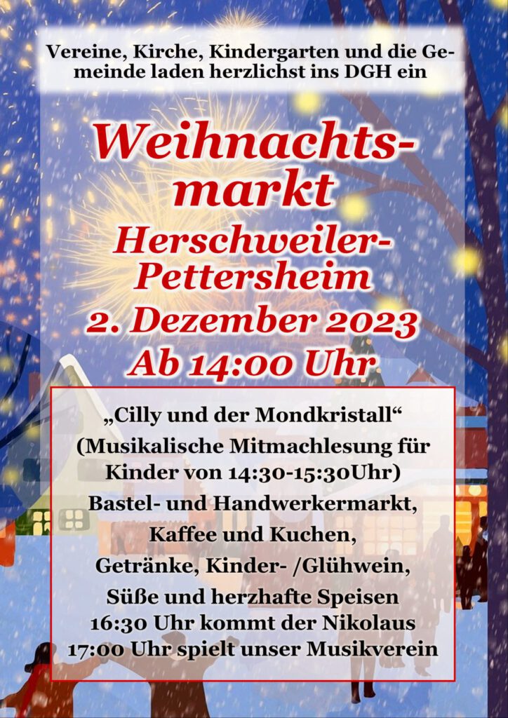 Wir freuen uns auf euren Besuch und gemeinsame Stunden auf dem Weihnachtsmarkt in Herschweiler-Pettersheim!